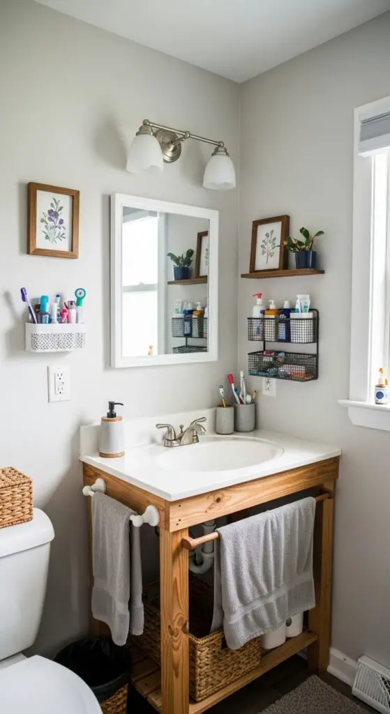 Focus on budget friendly storage solutions like wall-mounted shelves and compact organizers that maximize vertical space. DIY vanity projects using basic counters and creative sink placements create custom looks for fewer Bloxbucks.