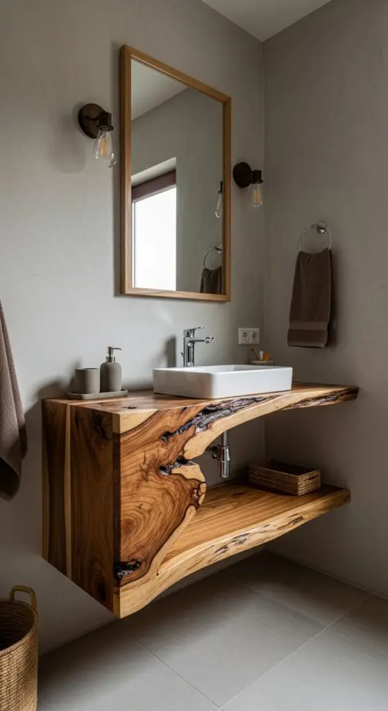 Raw, unfinished edges bring authentic character to your half bathroom when you choose live edge wood vanities that showcase nature’s original artistry. These unique pieces celebrate imperfections and organic curves that machine-made furniture can’t replicate.