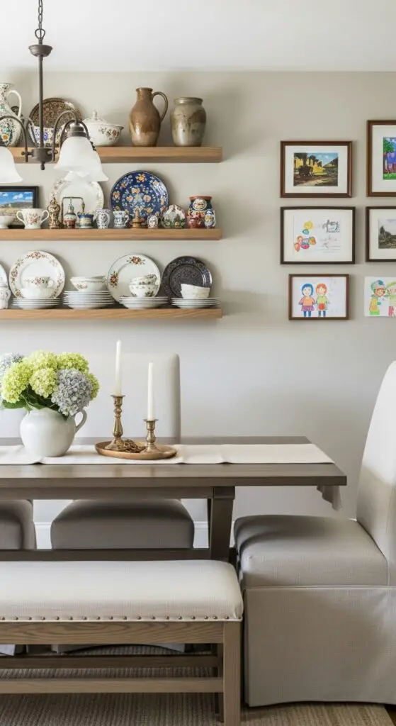 Your dining room becomes infinitely more interesting when you showcase items that tell your story rather than following generic decorating rules. Showcase family heirlooms like vintage china sets, antique serving pieces, or grandfather’s pipe collection on open shelving or glass cabinets. These meaningful objects spark conversations and create authentic character that mass-produced accessories can’t match.