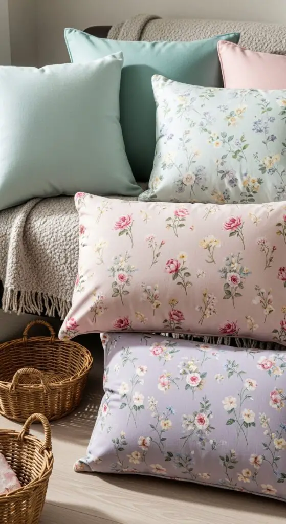 Cozy Throw Pillows in Delicate Spring Patterns