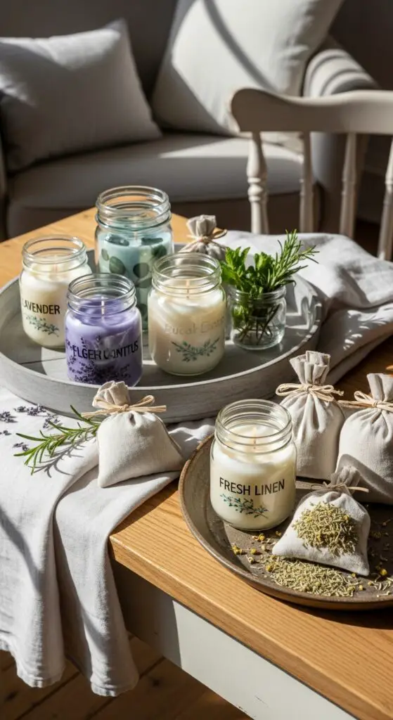 Nothing alters a cottage space quite like the right fragrance floating through sun-warmed rooms on a gentle spring breeze. I create fragrant candle displays using mason jars filled with lavender, eucalyptus, or fresh linen scents positioned on windowsills and vintage wooden trays. These natural arrangements bring instant cottage charm while filling rooms with delicate aromas.