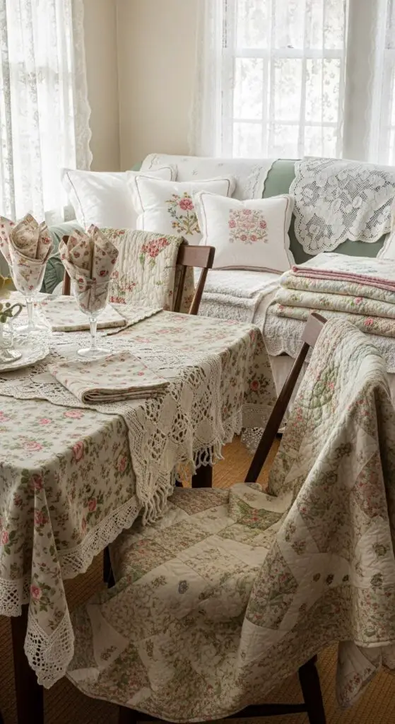 Layered Vintage Linens Create Instant Cottage Charm