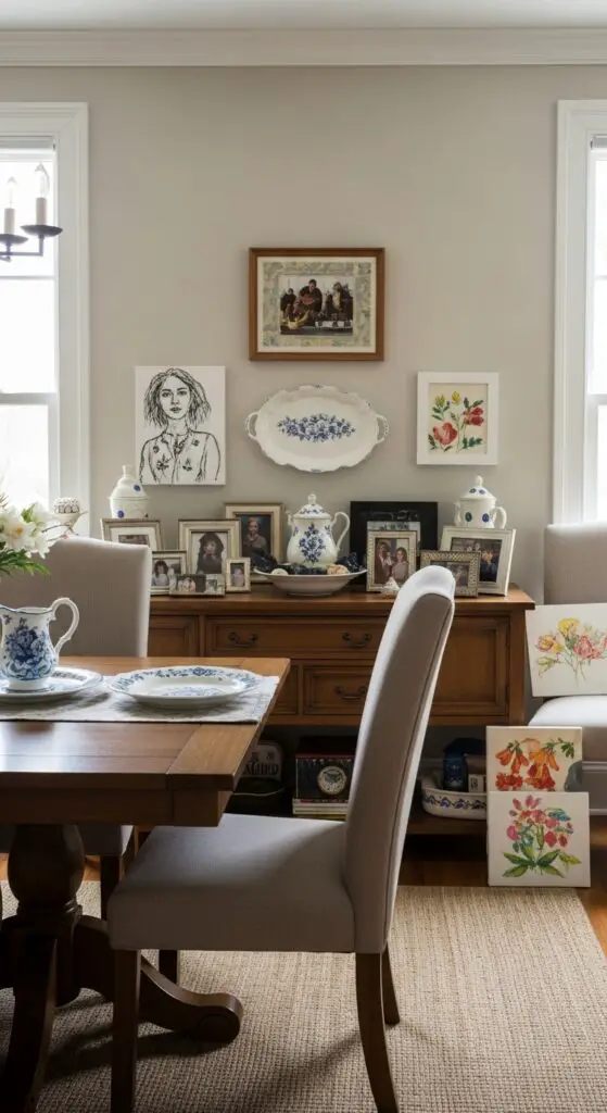 While beautiful ambiance sets the foundation, your dining room truly comes alive when it reflects who you’re and what matters most to your family. Display meaningful heirlooms like grandmother’s china or vintage serving pieces that spark conversations about your heritage.