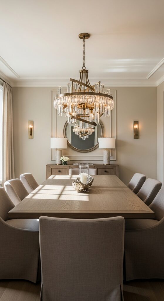 Install dimmer controls to shift seamlessly from bright family meals to intimate evening gatherings without switching fixtures.