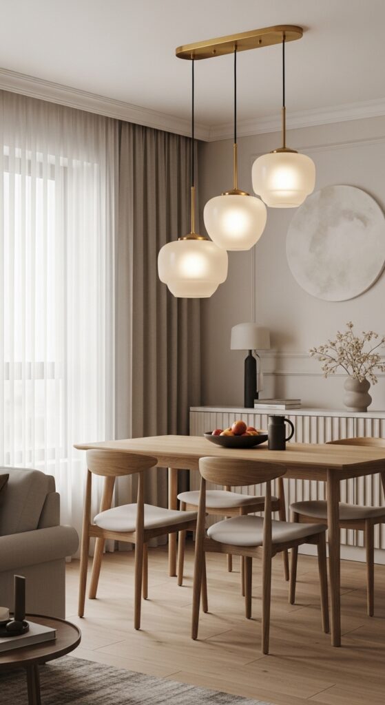 Try hanging three pendants with staggered pendant heights—position the center fixture lowest, flanked by slightly higher companions. This technique eliminates harsh shadows while providing ample task lighting for meals and conversations.