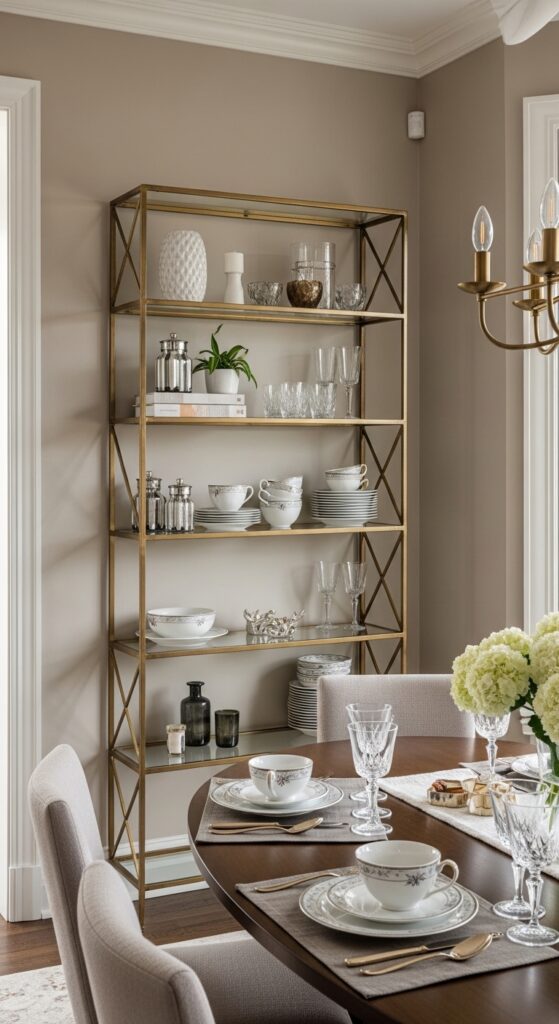 Brass and Metal Accent Shelving for Elegance