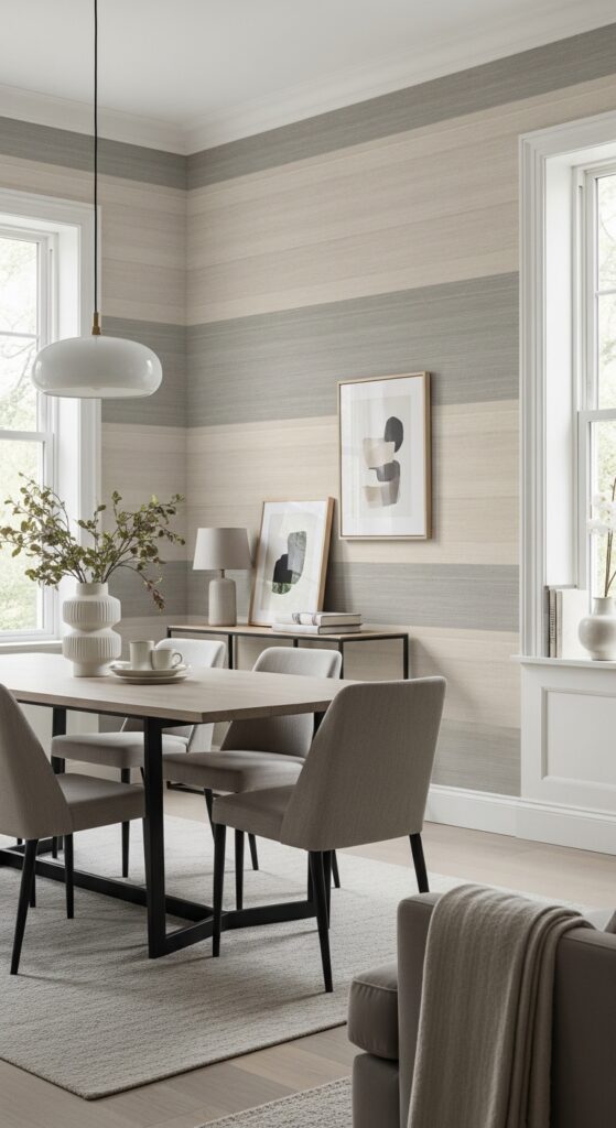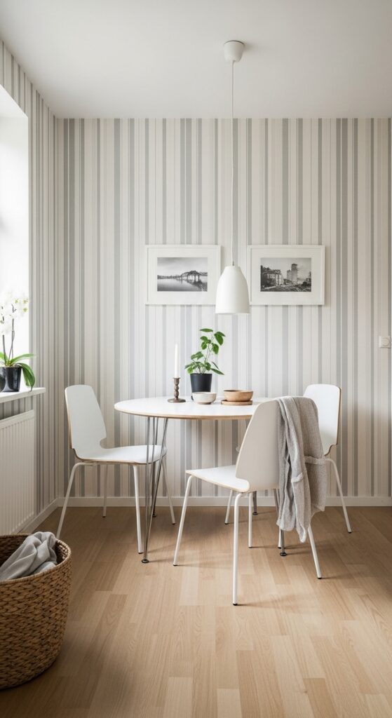 Striped Wallpaper Ideas to Visually Expand Small Dining Rooms