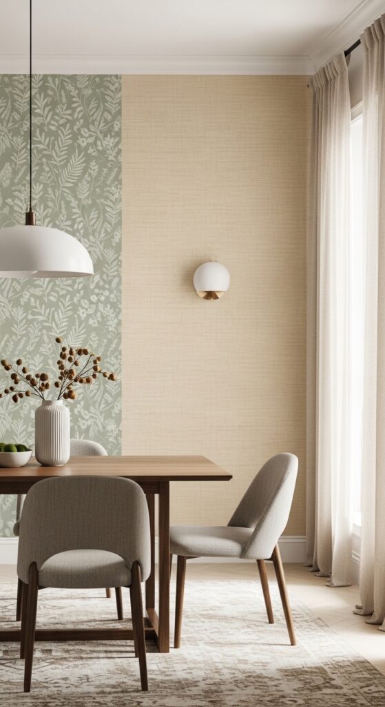 Minimalist designs featuring tone-on-tone damask or delicate botanical prints offer sophisticated elegance. These neutral backgrounds allow your furniture, artwork, and lighting to shine while creating a cohesive, refined atmosphere that adapts beautifully to any entertaining style.