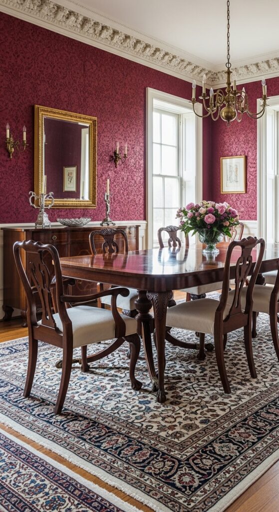 Bold Floral Wallpaper for Classic Dining Room Elegance