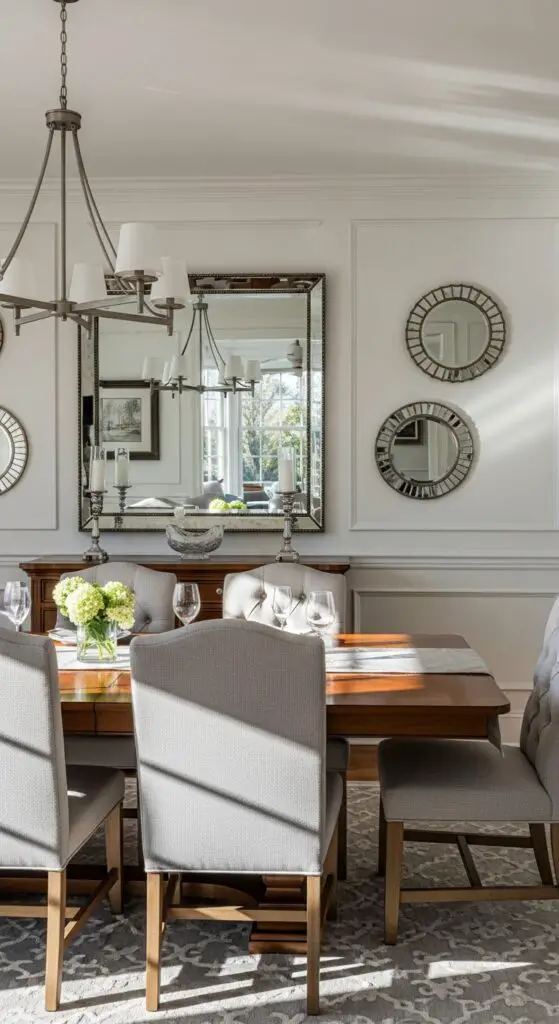 When positioned thoughtfully throughout your dining space, mirrors become powerful tools that amplify natural light and create the illusion of expanded square footage.