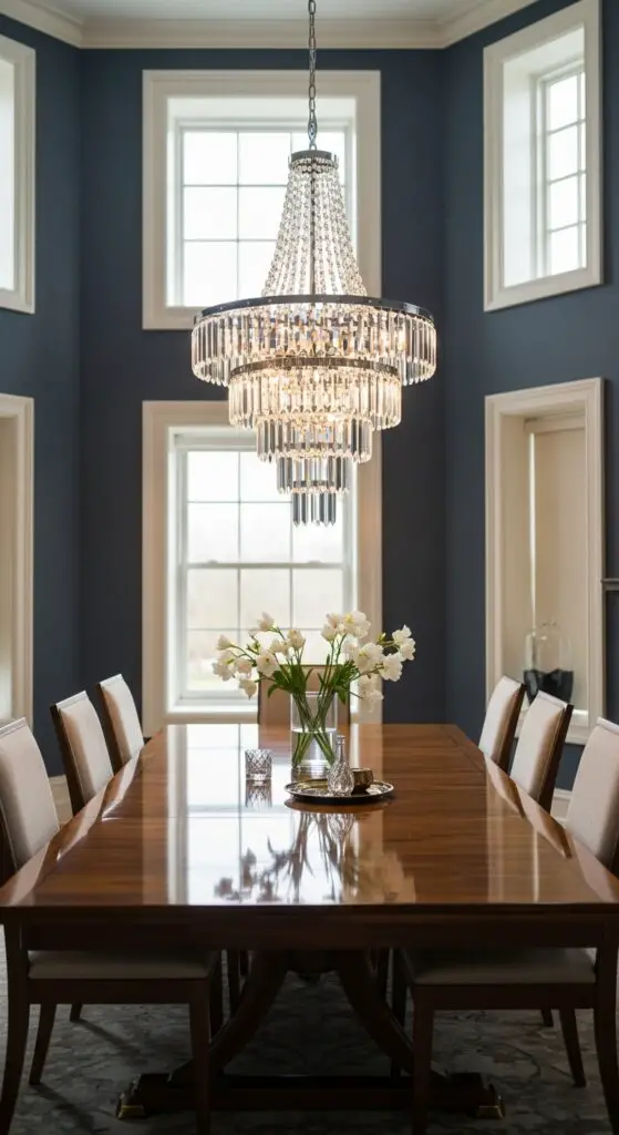 Multi tiered chandeliers create dramatic vertical interest and work exceptionally well in rooms with high ceilings. Choose fixtures with crystal accents for traditional elegance or sleek metal finishes for contemporary sophistication. Consider the scale carefully—your chandelier should measure roughly one-third of your table’s length. Install dimmer switches to control ambiance, allowing you to move effortlessly from intimate dinners to festive celebrations.