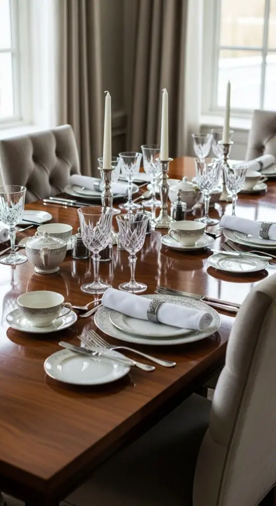Layer sophisticated table settings with charger plates, cloth napkins, and polished silverware for maximum impact. Don’t save these treasures for holidays—incorporate them into regular entertaining to truly enjoy their beauty.