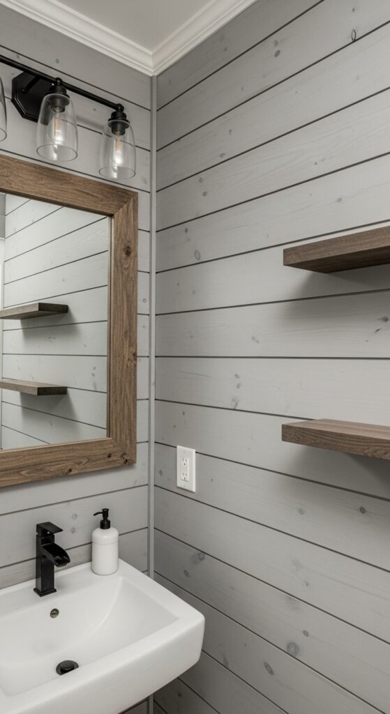 Choose weathered grey tones for authentic farmhouse appeal, or opt for sleek painted grey for modern edge. Complement your shiplap with rustic grey wood accents like floating shelves or mirror frames. The horizontal lines visually expand your space while adding texture that breaks up plain walls beautifully.