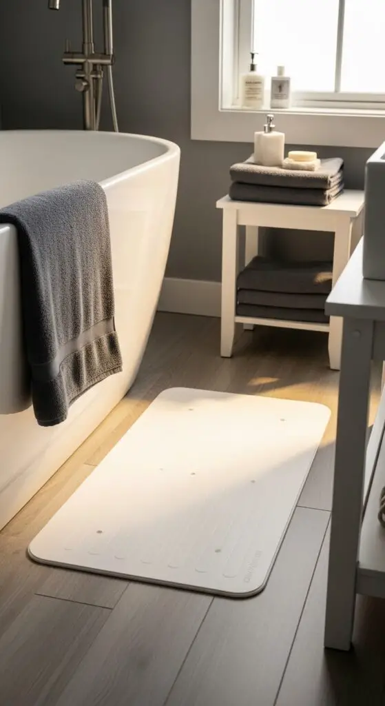 Choose waterproof models with easy-to-clean surfaces that can handle bathroom moisture. Your guests will appreciate stepping onto warm, cozy surfaces instead of shocking cold tiles each morning.