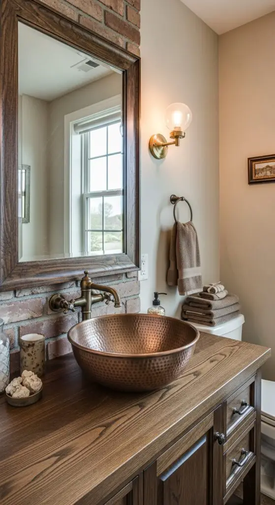 Choose antiqued finishes for authentic vintage appeal that develops natural patina over time. Copper vessels pair excellently with dark wood vanities and exposed brick walls.