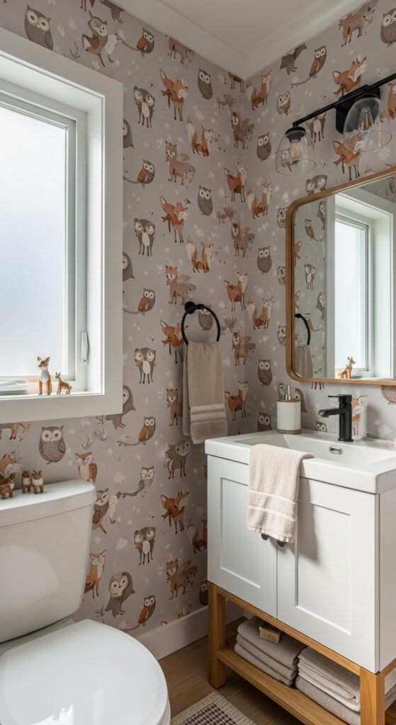 Consider designs featuring playful polka dots mixed with animal silhouettes for added visual interest. These patterns work exceptionally well in powder rooms where bold choices make memorable impressions while maintaining your home’s welcoming character.