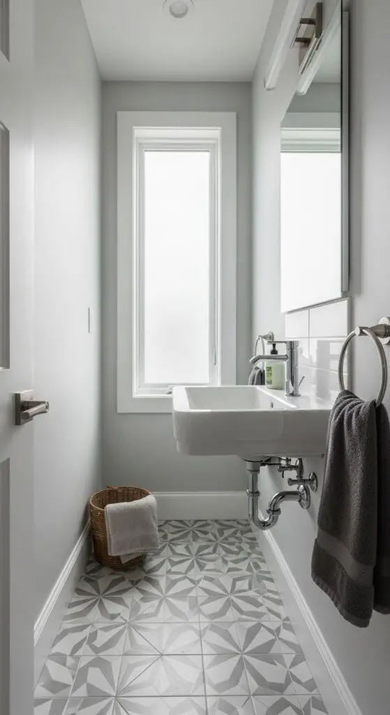Strategic design choices like these help create a bright, spacious feel that transforms even the tiniest guest bathroom into an inviting retreat.
