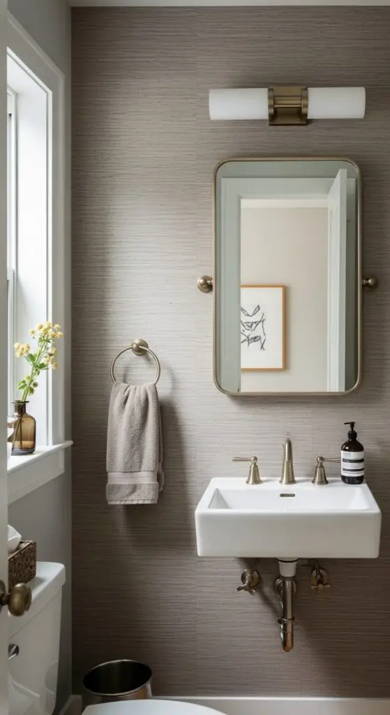 Textured wallcoverings add sophisticated depth—consider grasscloth, embossed patterns, or geometric designs that create visual interest on compact walls. Inspiring wallpaper designs can elevate your guest bathroom by adding personality and transforming it into a memorable focal point. Bold paint colors such as rich burgundy, dramatic black, or lively jewel tones metamorphose ordinary powder rooms into memorable spaces that showcase your personality and design confidence.
