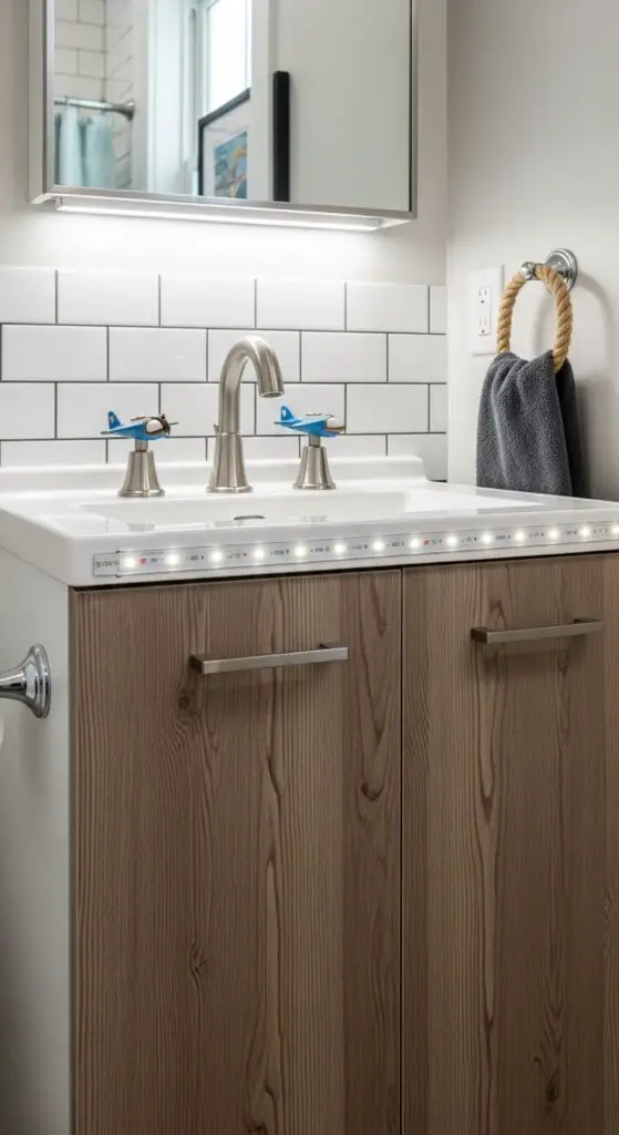 Building on the enthusiasm of interactive bath accessories, strategic lighting alters an ordinary bathroom into an extraordinary space that fascinates boys’ imaginations. You’ll create magical environments using color-changing LED strips behind mirrors or under vanities for mesmerizing mood lighting effects.