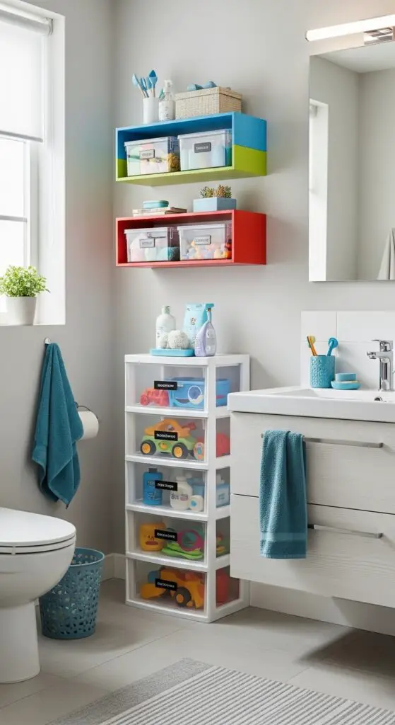 Use stackable storage containers with transparent fronts, allowing him to see contents while maintaining order. Label each container with images and words to reinforce reading skills. Create designated zones for different items—one area for bath toys, another for personal care products. These systems give him ownership over his space while building lifelong organizational habits.