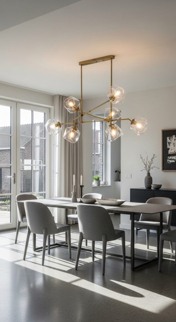 Modern lighting fixtures serve as sculptural centerpieces that alter your dining room from ordinary to extraordinary with dramatic visual appeal. You’ll reshape your space instantly by selecting bold fixtures that command attention and reflect your personal style.