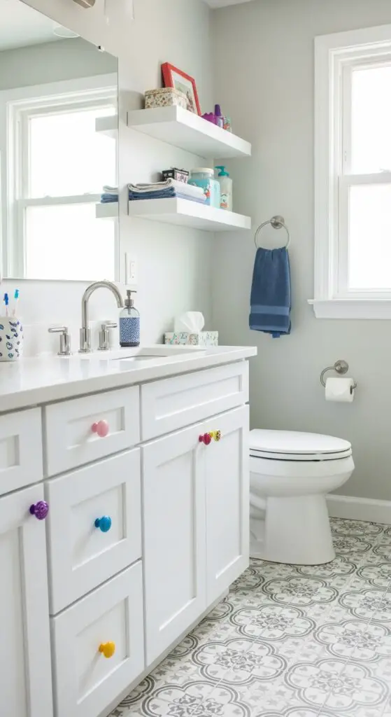 Altering your kids’ bathroom doesn’t require a complete renovation when you focus on strategic updates that deliver maximum visual impact. Cost effective updates like swapping cabinet hardware for colorful knobs instantly modernize the space without breaking your budget.