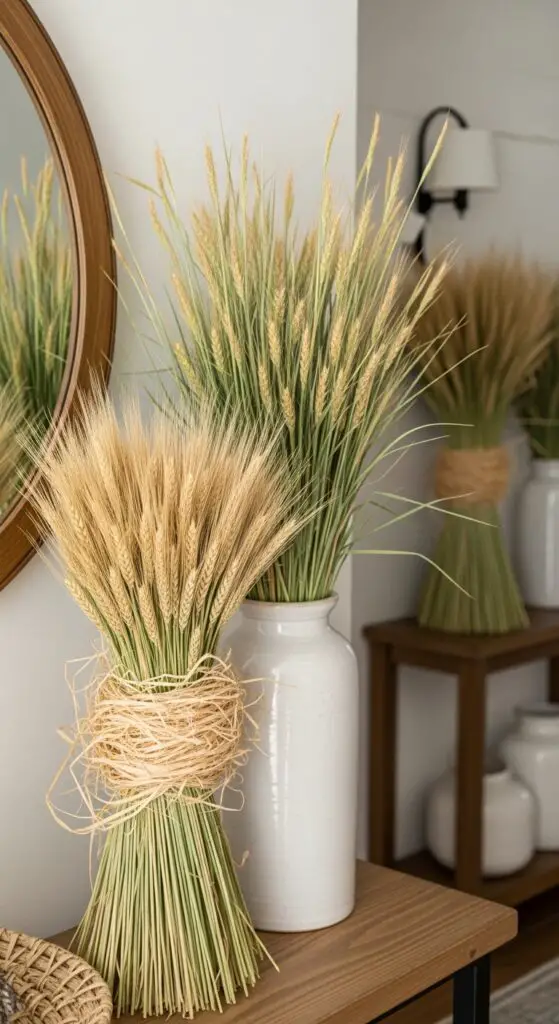When bundled together, fresh grass and wheat stalks alter simple spring arrangements into textured artworks that capture nature’s wild beauty. I’ve uncovered that fresh wheat bundle arrangements create striking focal points when placed in tall ceramic vases or rustic mason jars.
