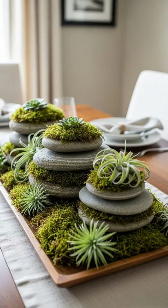 Natural Moss and Stone Centerpieces