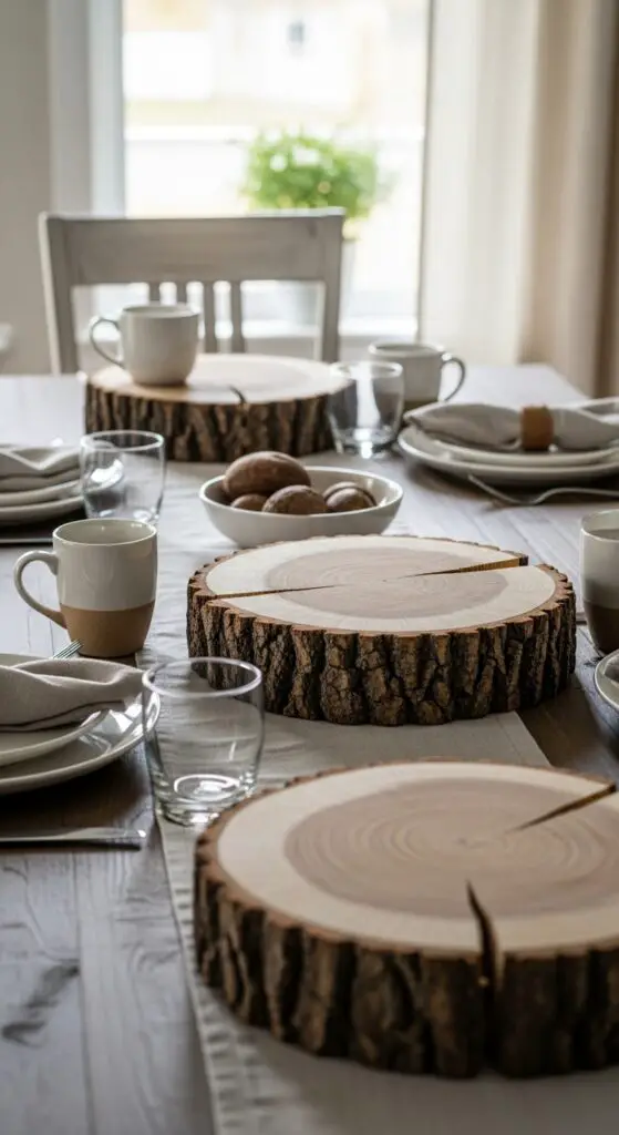 Use smaller slices as cheese boards or appetizer plates for intimate gatherings. Larger pieces work perfectly as organic table risers, creating varied heights for your spring buffet displays. Stack different sizes to build dramatic focal points that celebrate nature’s raw beauty.