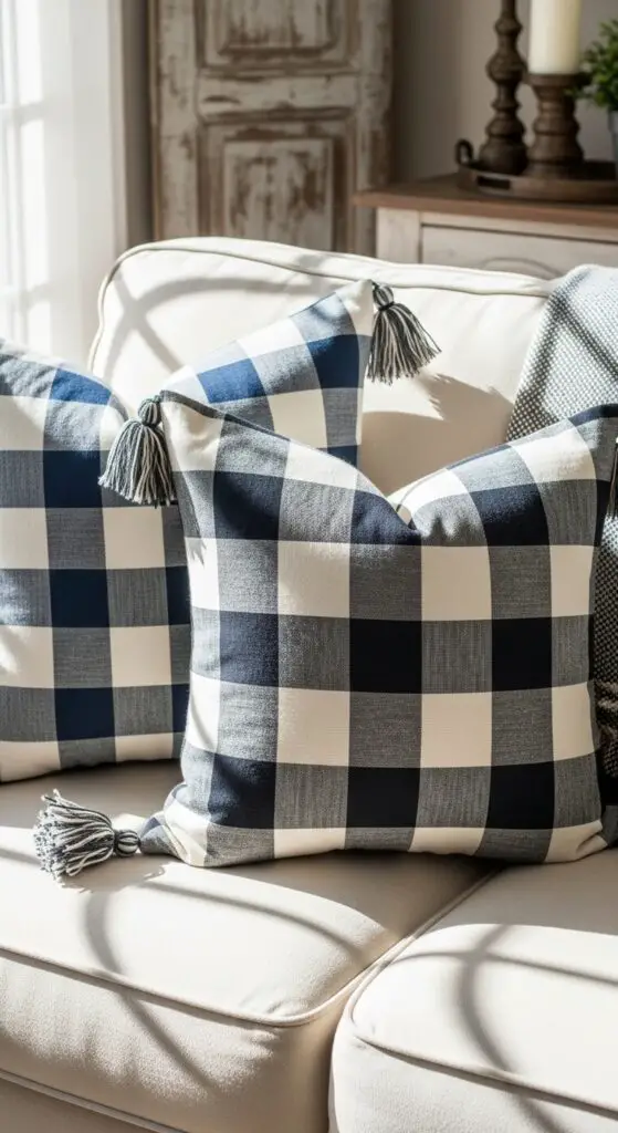 As warmer weather arrives, ticking stripe pillow covers convert any seating area into a fresh, inviting space that captures spring’s relaxed elegance. I love how these classic navy-and-white or black-and-white stripes instantly brighten tired furniture while maintaining that authentic farmhouse charm you’re seeking.