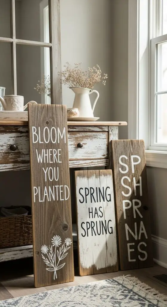 Weathered Wood Signs With Hand-Painted Spring Sayings