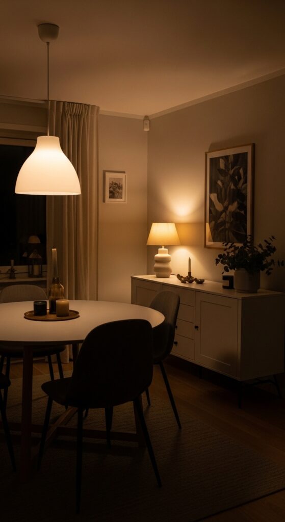 Once you’ve established your seating arrangement, the right lighting will transform your dining room from simply functional to genuinely inviting. Ditch the harsh overhead fixture that makes everyone look tired. Instead, welcome layered task lighting that combines multiple sources at different heights.