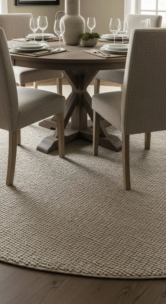 Use Area Rugs to Define and Anchor Your Circular Dining Space
