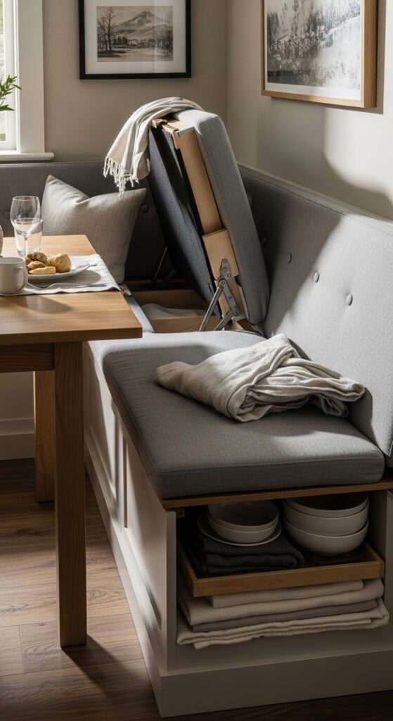 Built-in banquettes convert awkward dining room corners into cozy seating areas that accommodate more guests than traditional chairs ever could. You’ll maximize your space while creating an intimate dining experience that feels custom-designed for your home.
