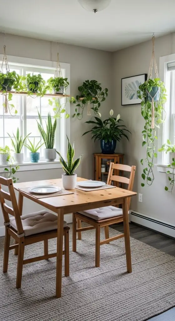 Plants breathe life into small dining rooms by introducing organic shapes, lively colors, and air-purifying benefits that create an instantly welcoming atmosphere. You’ll uncover that strategically placed greenery transforms cramped spaces into lively sanctuaries where meals become memorable experiences.