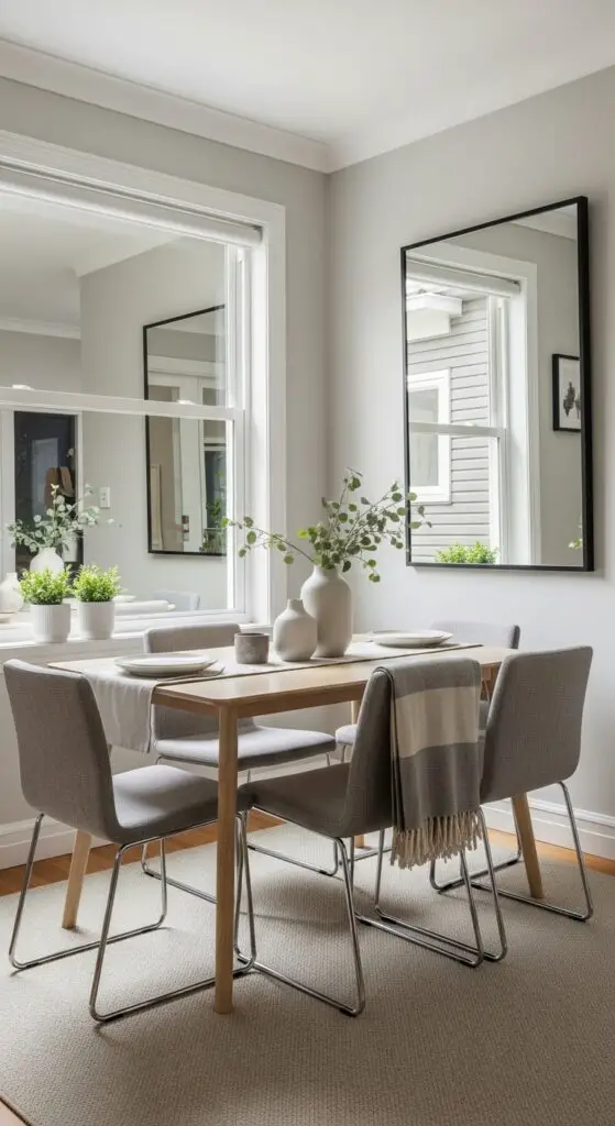 Strategic lighting paired with mirrors amplifies both artificial and natural illumination, making evening meals feel more spacious. Choose frameless or thin-framed mirrors to maintain clean lines and avoid visual clutter.