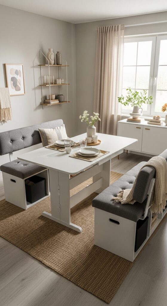 Since small dining rooms demand every piece earn its keep, multi-functional furniture reconfigures limited space into a powerhouse of efficiency and style. Choose modular furniture pieces like expandable tables that adjust from intimate dinners to larger gatherings without permanently claiming floor space.