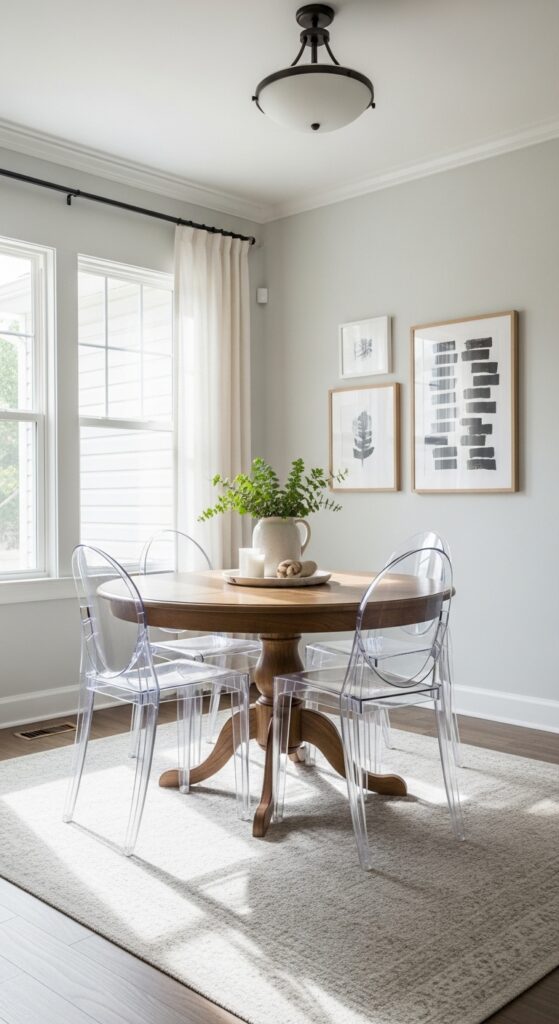 Clear acrylic and glass dining chairs function as visual magic tricks that make your small dining room appear substantially larger and more open. Their transparent design creates an unobstructed sightline that eliminates visual clutter while maintaining full functionality.