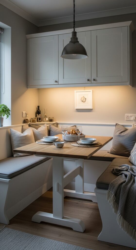 When breakfast nooks lack sufficient natural light, under-cabinet lighting alters these cozy spaces into bright, welcoming areas for morning meals. You’ll find that proper undercabinet lighting placement beneath upper cabinets eliminates shadows while creating ambient illumination for your compact dining area.