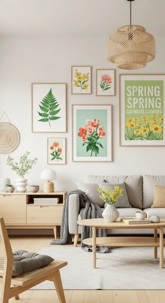 Showcase nature inspired pieces like botanical prints, scenic photography, or watercolor gardens to instantly alter your apartment’s atmosphere. Choose artwork with bright yellows, soft greens, and coral pinks to capture spring’s essence. Consider creating a gallery wall mixing framed prints with canvas pieces, or select one focal point piece above your sofa for maximum impact.