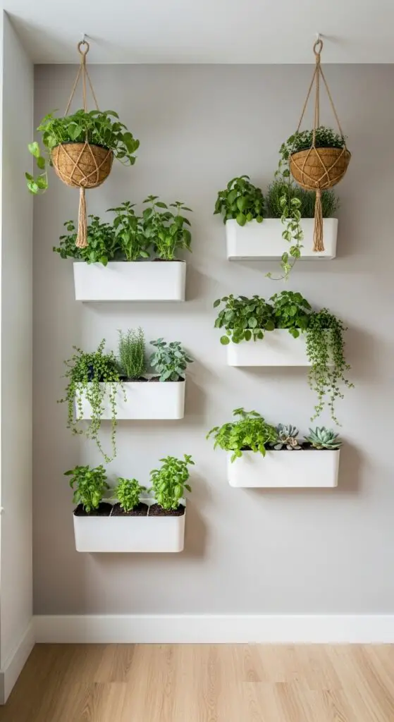 Altering your apartment’s vertical surfaces into lush green spaces maximizes your growing potential without sacrificing precious floor area. I recommend installing wall mounted planters at varying heights to create visual interest and accommodate different plant sizes. These systems work perfectly for herbs, succulents, and trailing varieties that thrive in compact environments.