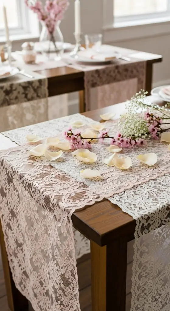 Delicate Lace Table Runners With Fresh Petal Scatter