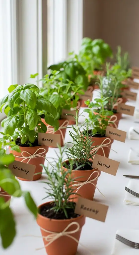 DIY potted herb labels add a personal touch—I recommend kraft paper tags with each guest’s name and the herb variety written in calligraphy.