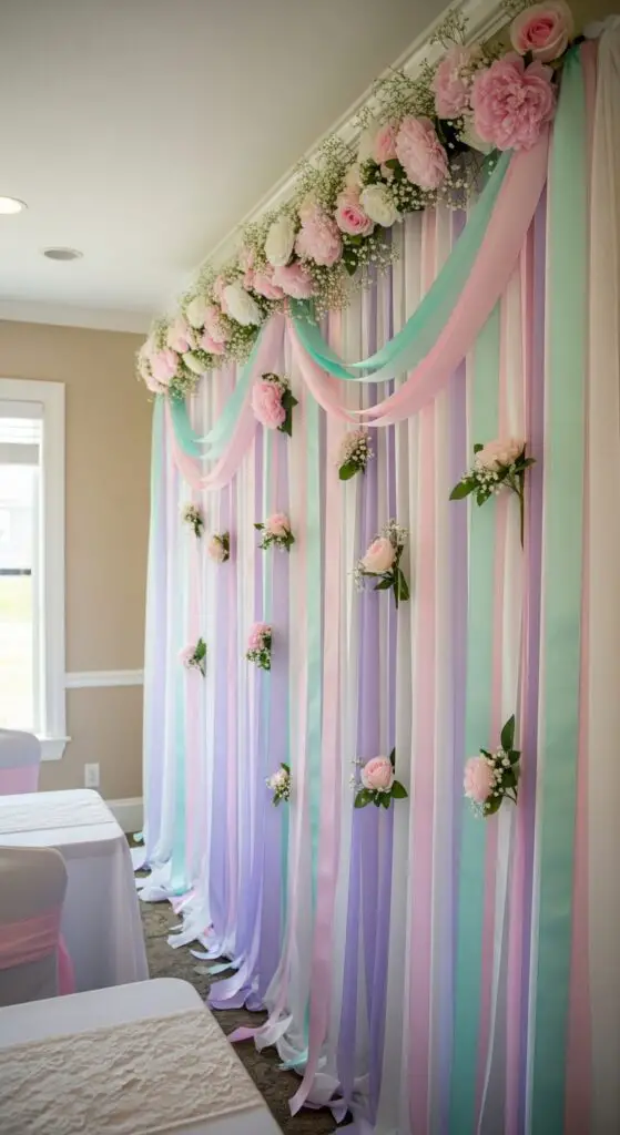 Pastel Ribbon Backdrop With Cascading Silk Flowers