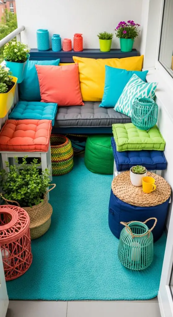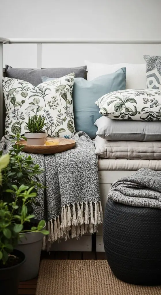 While hard surfaces define your balcony’s structure, soft furnishings lively it into an inviting retreat where you’ll actually want to spend time. Layer weather-resistant cushions in varying sizes across your seating to create comfortable seating arrangements that welcome relaxation.