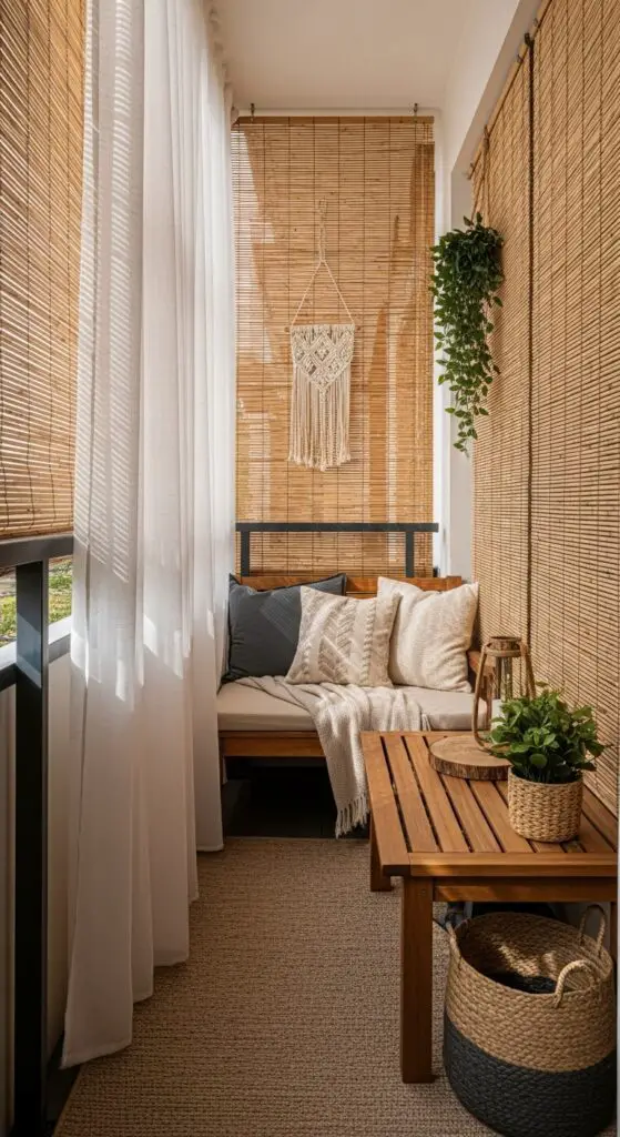 Privacy screens alter your balcony into a secluded retreat while adding visual interest through patterns, textures, and colors that complement your spring décor theme. You’ll create instant intimacy without sacrificing style when you hang sheer curtains from tension rods or ceiling hooks. These flowing fabrics catch spring breezes beautifully while maintaining airflow.
