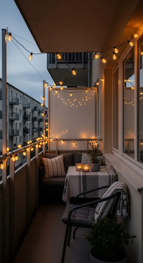 Several strategically placed string lights alter your balcony from a daytime retreat into an enchanting evening oasis that extends your outdoor enjoyment well past sunset. I recommend creating layers of warm illumination by draping lights along railings, wrapping them around posts, and zigzagging overhead between anchor points.