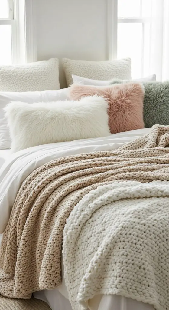 These cozy elements work particularly well in bedroom decor where you want to establish a calming atmosphere that promotes rest and relaxation.