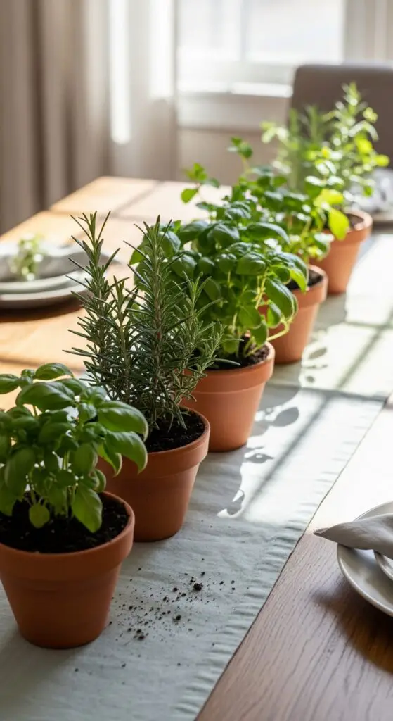 Beyond creating visual appeal with your table settings, functional centerpieces serve dual purposes by enhancing your dining experience while providing memorable gifts for departing guests. I love creating edible herb displays using small terracotta pots filled with fresh basil, rosemary, and mint arranged down the table’s center. These arrangements naturally perfume your dining space while giving guests something practical to take home.