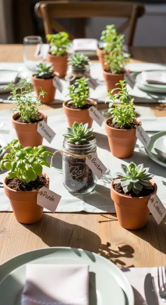 Small mason jars or terra cotta pots work perfectly, and your guests will remember your gathering every time they water their plant.